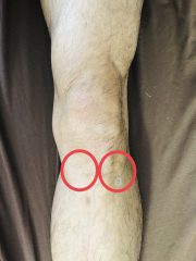 膝に痛みがあり伸展制限がある場合は、ひざ内側に線維化して腫れて固くなります。