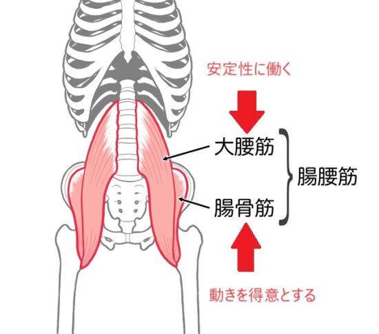・腸腰筋(ちょうようきん)は①大腰筋(だいようきん)②腸骨筋(ちょうこつきん)をまとめて言います。