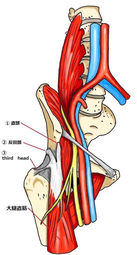 third headは小殿筋と筋連結も持っているので大腿直筋起始部の滑走性を良くすることで股関節のインピンジメント(衝突)を回避できます!