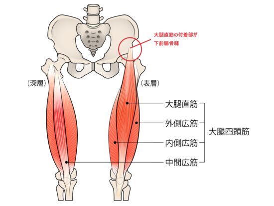 大腿直筋は股関節と膝の2つの関節を跨ぎ2つの関節の機能を持っている重要な筋肉‼