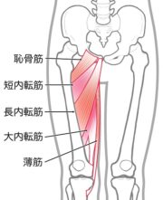 内ももの筋肉(内転筋群):開脚で主に伸びる筋肉です。