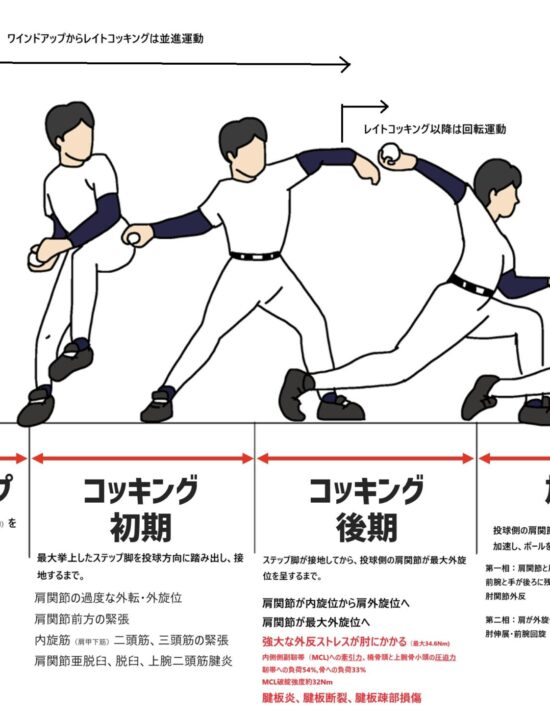 投球時の最大外旋 (MER) 約 140°〜150° 肩甲骨・胸椎の動きを含む