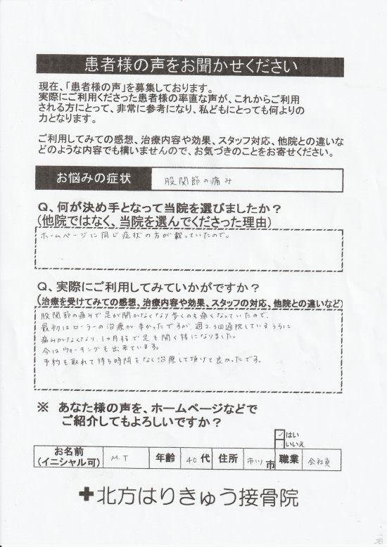 当院の変形性股関節症、”10度の後傾”を可能にする”施術!!