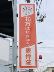 信号を渡るとすぐに左手にオレンジ色の看板「北方はりきゅう接骨院」があります。